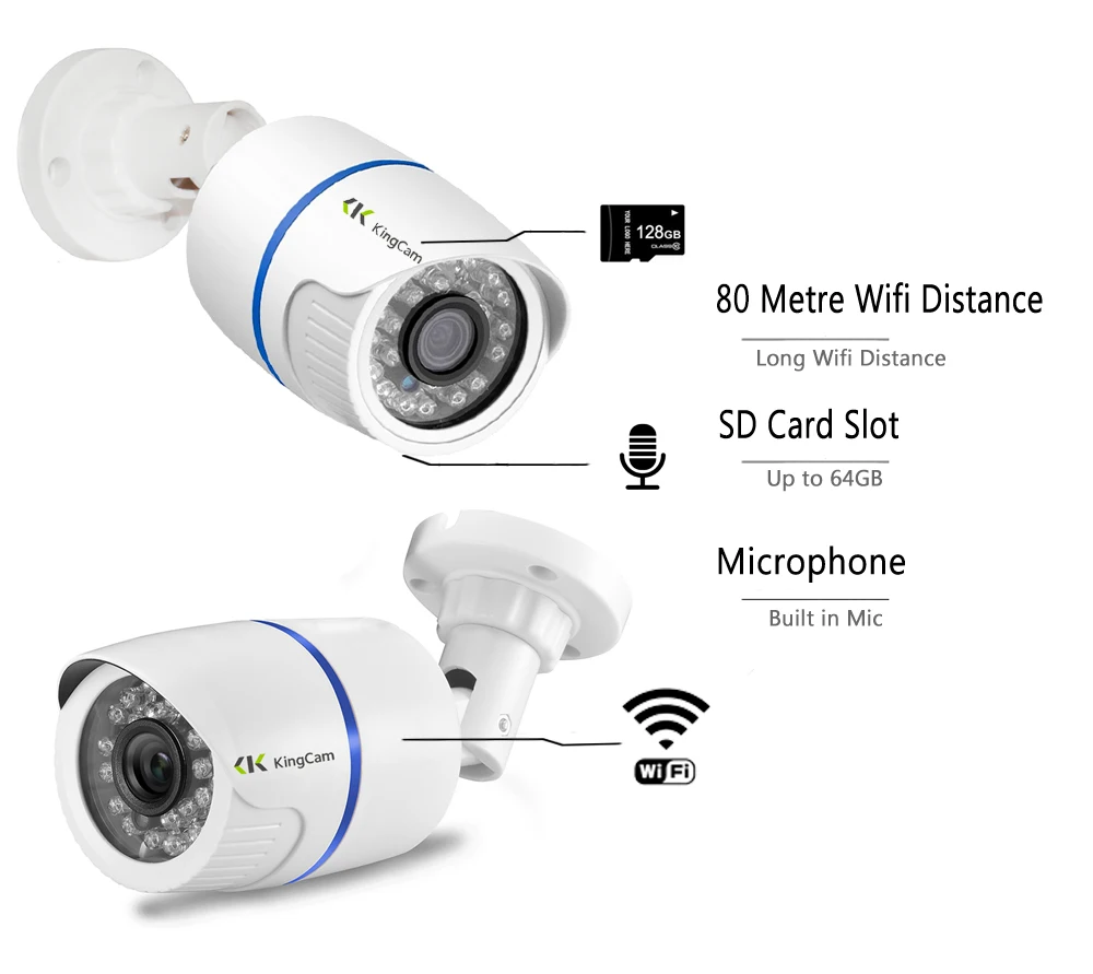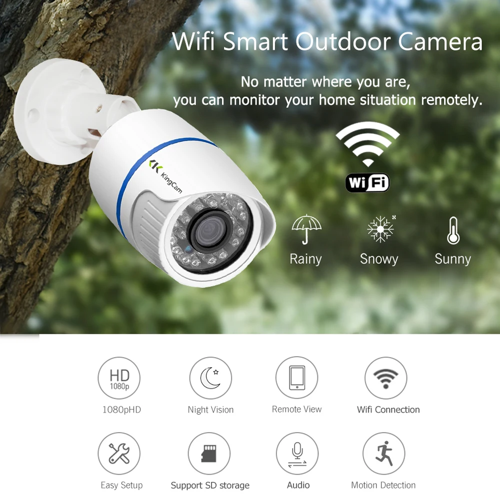 Best . (40% Off) Buy KingCam Wifi IP Camera 1080P Wireless CCTV Bullet Outdoor Indoor Weatherproof Cameras With Microphone,Support SD TF Card Cam Price Online.