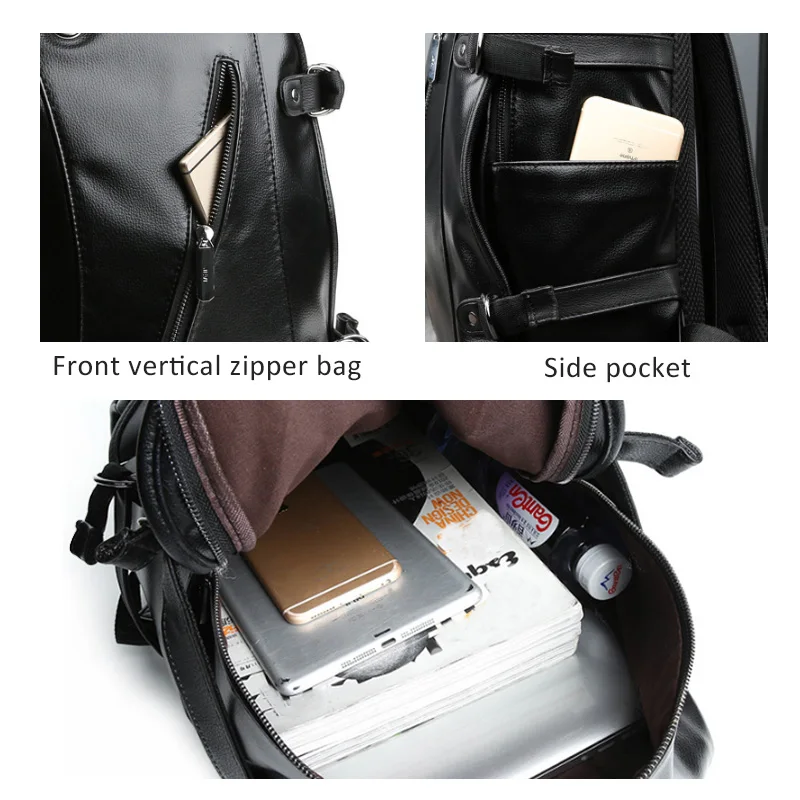 Special Offer Men s Leather Waterproof Large Laptop Bag USB Design with Headphone hole Travel Backpack School Bags Mochila Masculina Discount 43% Today!