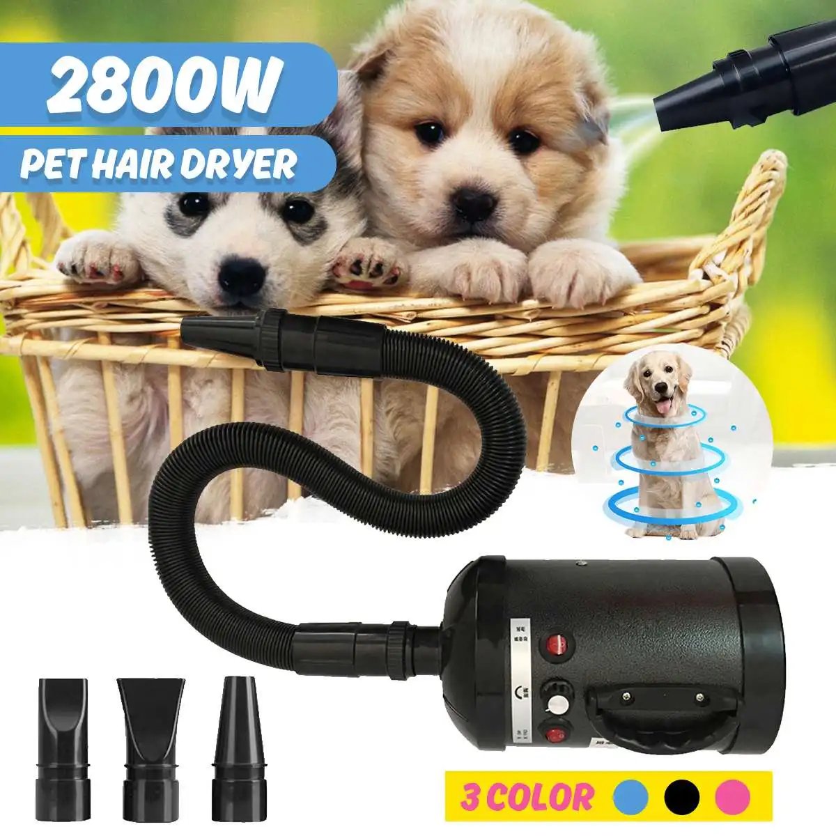 Best . (50% Off) Buy 3 Color Eu Plug 2800W Pet Dryer Blower Adjustable Dog Grooming Dryer Pet Hair Dryer Strong Power Low Noice Blower with 3 nozzles Cheap Online.