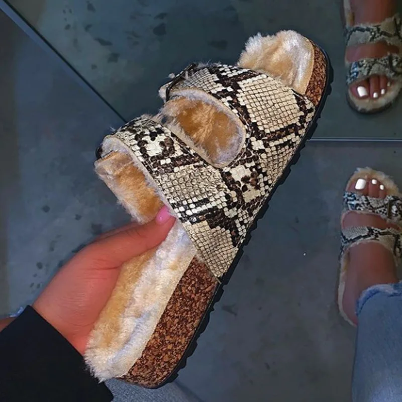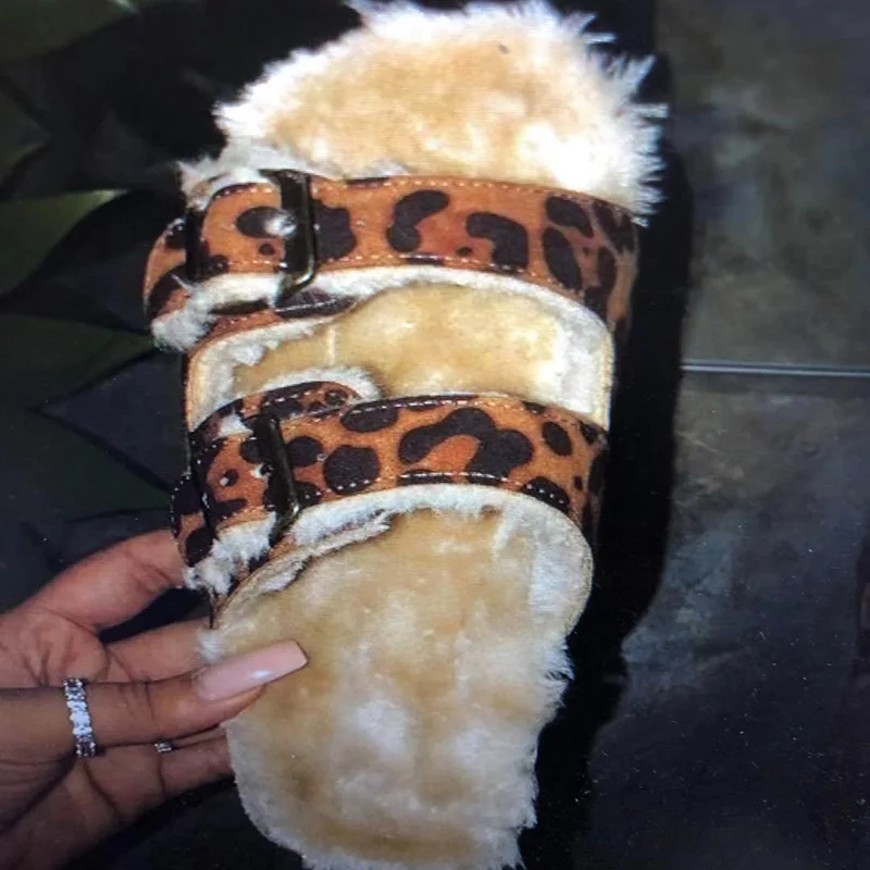 Special Offer Winter Women Slippers Leopard Shoes Hollow Flat Heels Platform Fur Sole Beach Mules Ladies Slides Party Sandals Zapatos De Mujer Discount 50% Today!
