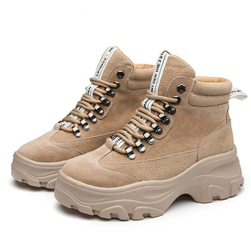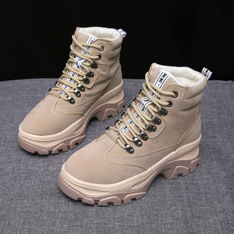 Special Offer New Women genuine leather winter boots warm fur women fashion platform shoes 2019 retro high top casual martin boots botas mujer Discount 60% Today!