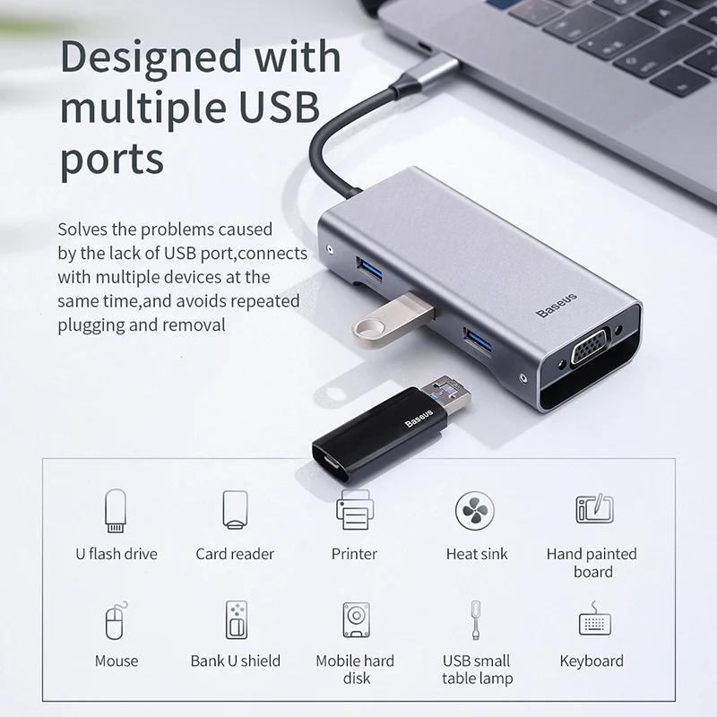 Special Offer Baseus USB C HUB to USB 3.0 HUB HDMI RJ45 VGA USB Splitter for MacBook Pro Air Type C HUB for Huawei Mate 20 Pro Samsung S9 S10 Discount 24% Today!