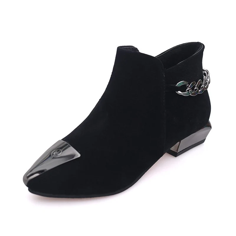Special Offer Tangnest 2019 Women Ankle Boots Autumn Med Square Heel Slip On Flock Leather Booten Metal Decoration Ladies Casual Shoes XWX6890 Discount 50% Today!