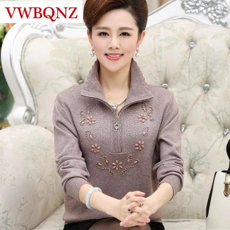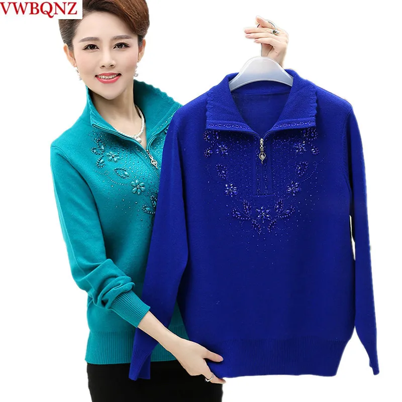 Special Offer Middle aged Women Wool Sweater Coat Plus size 4XL Autumn Winter Loose Stretch Soft Zipper Female Sweater Casual Pullover Tops Discount 58% Today!
