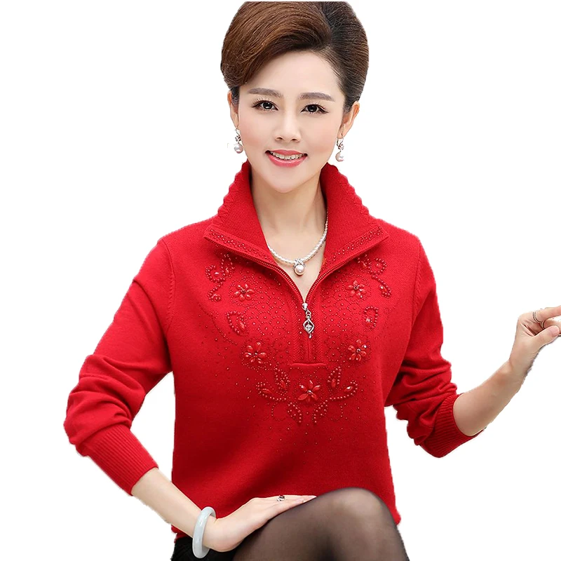 Best . (58% Off) Buy Middle aged Women Wool Sweater Coat Plus size 4XL Autumn Winter Loose Stretch Soft Zipper Female Sweater Casual Pullover Tops Cheap Online.
