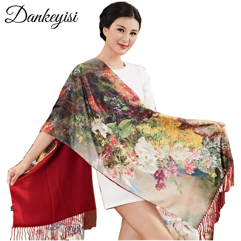 Special Offer DANKEYISI Brand Foulard Femme Hijab Bandana Scarf Women Long Tassel Floural Print Scarf Winter Shawl 100% Silk Scarves Female Discount 59% Today!