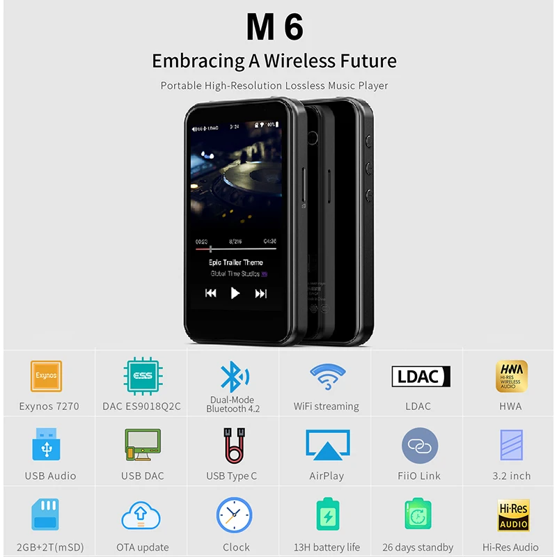 Best . (0% Off) Buy FiiO M6 Hi Res Bluetooth HiFi Music Portable MP3 Player USB DAC ES9018Q2C Based Android with aptX HD LDAC WiFi Air Play DSD Cheap Online.