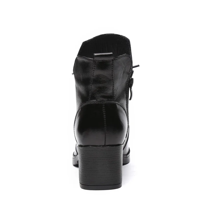 Special Offer DRKANOL Genuine Leather Thick Heel Women Boots 2019 Solid Black Winter Ankle Boots Motorcycle Botas Pointed Toe Warm Women Shoes Discount 32% Today!