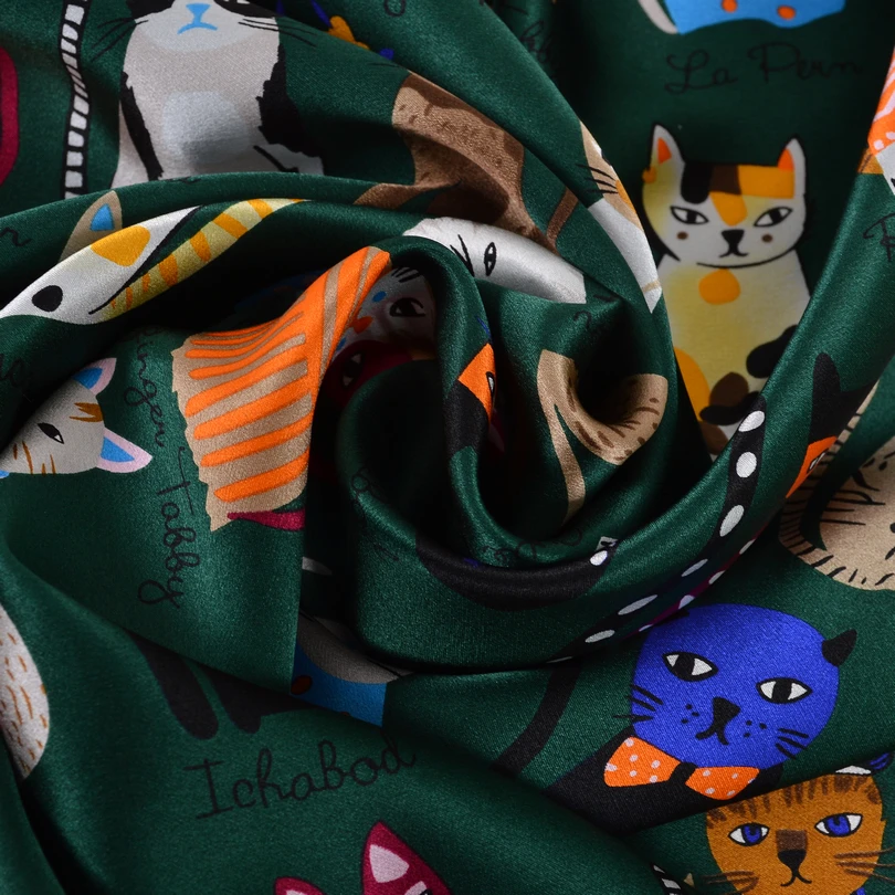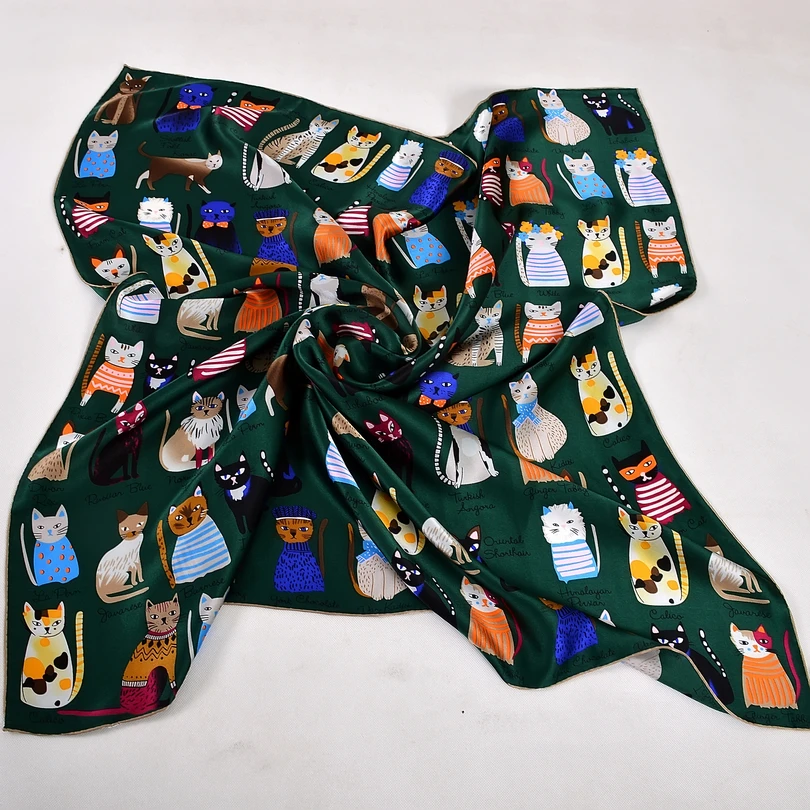 Best . (45% Off) Buy BYSIFA Green Scarves New Design Cartoon Cats Women Children Square Silk Scarf 90*90cm Spring Autumn Winter Cute Silk Scarf Shawl Cheap Online.