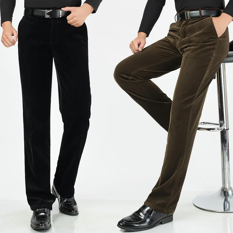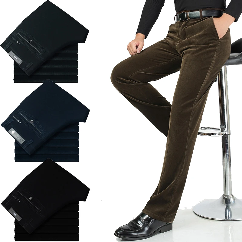 Best . (45% Off) Buy New Autumn men high waist loose corduroy pants business casual pants straight Elastic trousers middle aged corduroy trousers Cheap Online.