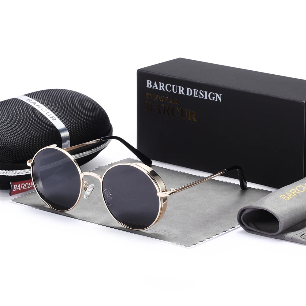 Special Offer BARCUR Original Round Sunglasses Men Vintage glasses Women Steampunk Polarized Eyewear Discount 49% Today!