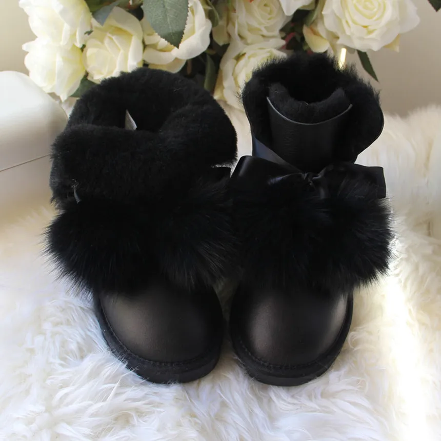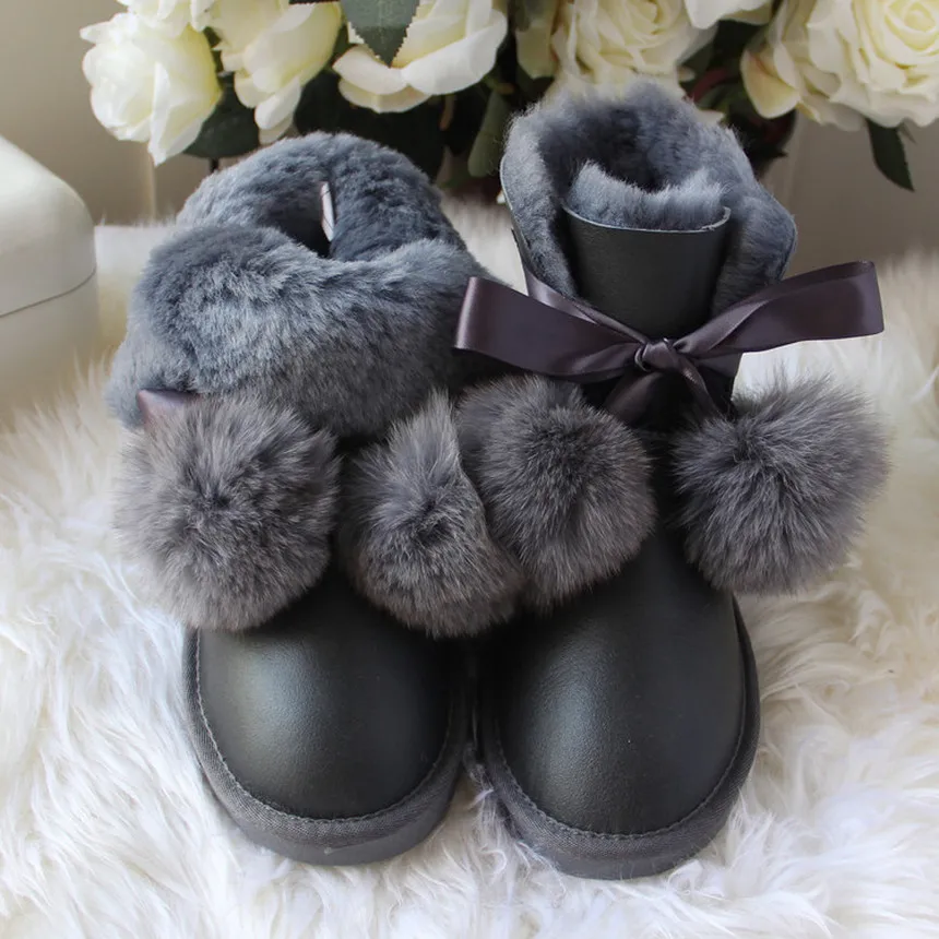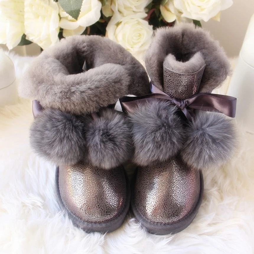 Special Offer G ZaCo Luxury Genuine Sheepskin Boots Women Winter Fox Ball Wool Snow Boots Waterproof Sheep Flat Short Boots Women s G Boot Discount 51% Today!