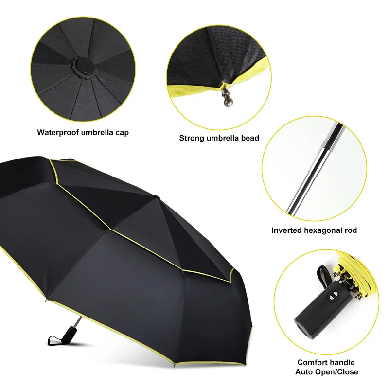 Best . (63% Off) Buy High Quality 120cm Fully automatic Umbrella Men Rain Woman Double Layer 3 Folding Business Gift Umbrella Windproof Sun Umbrellas Price Online.