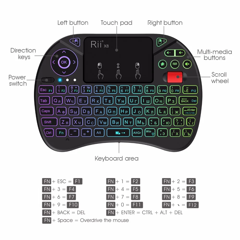 Best . (22% Off) Buy Original Rii X8 Backlight 2.4G Wireless Fly Air Mouse RGB i8 I8X Backlit Keyboard Russian English Spanish Handheld Touchpad Price Online.