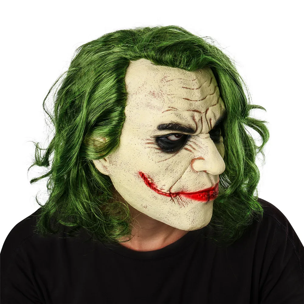 Special Offer Joker Mask Movie Batman The Dark Knight Cosplay Horror Scary Clown Mask with Green Hair Wig Halloween Latex Mask Party Costume Discount 30% Today!