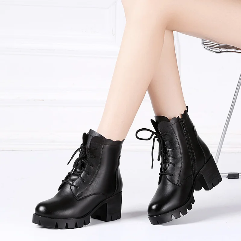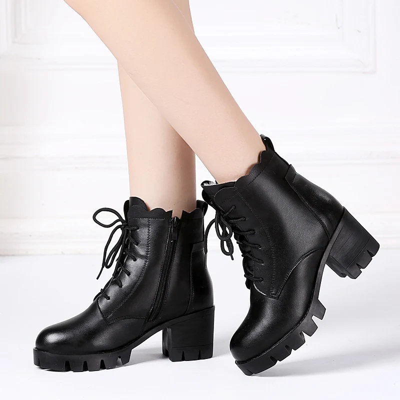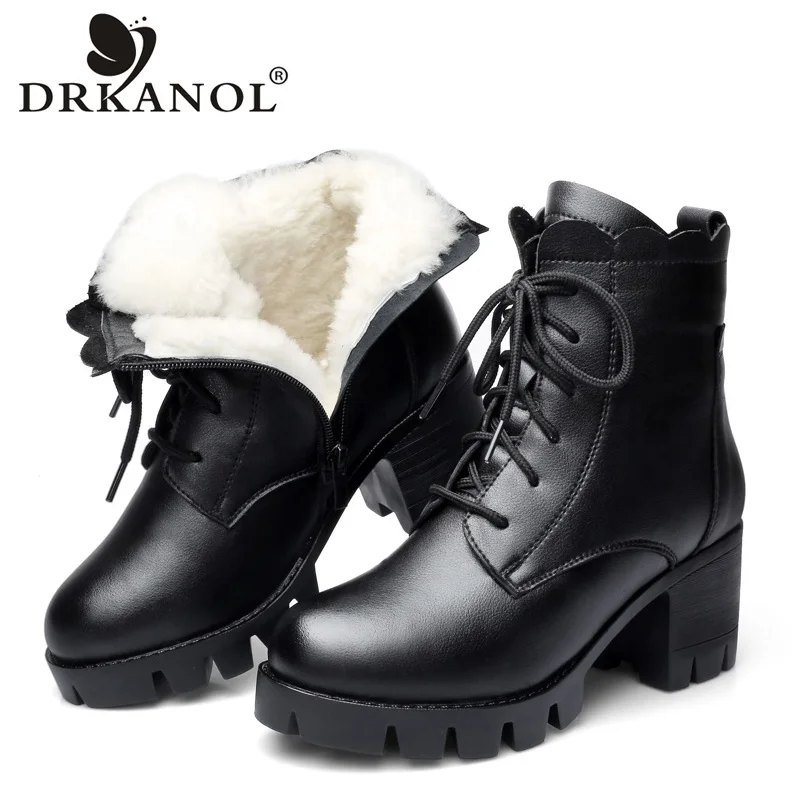 Special Offer DRKANOL 2019 Women Snow Boots Winter High Heel Ankle Boots Women Warm Platform Shoes Genuine Leather Thick Wool Fur Booties Discount 33% Today!