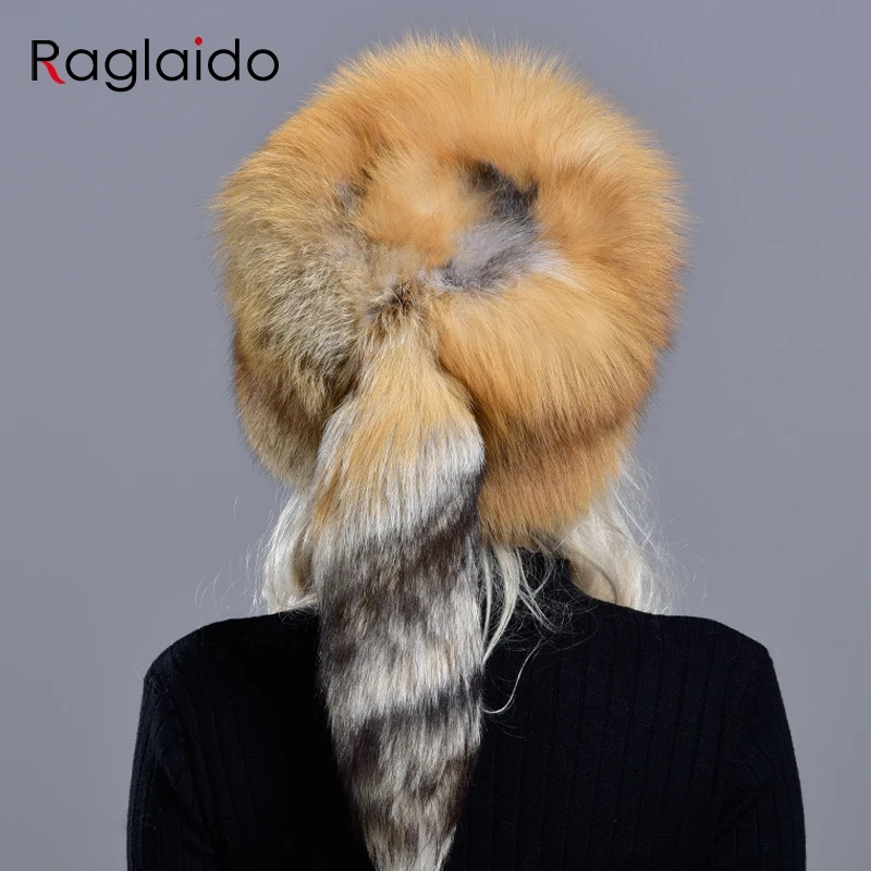 Special Offer Raglaido real fox fur hats for women winter fashionable stylish Russian thick warm beanie hat natural fluffy fur hat with tail Discount 48% Today!