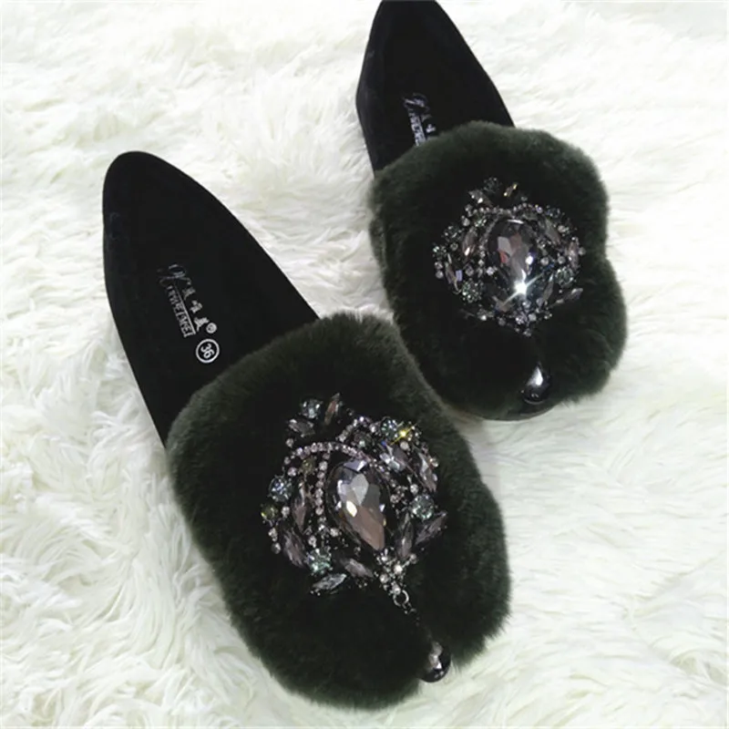 Special Offer Luxury Glitter rhinestone moccasins ladies flat heels platform plush loafers comfort slip on espadrilles warm winter shoes women Discount 49% Today!