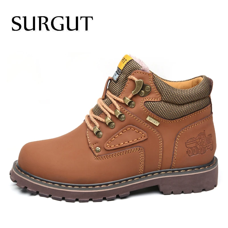 Special Offer SURGUT Winter New Men Ankle Boots Motorcycle Fur Plush Warm Classic Fashion Snow Boot Autumn Men Casual Outdoor Working Boots Discount 49% Today!