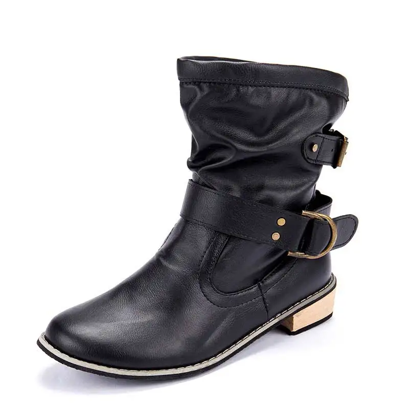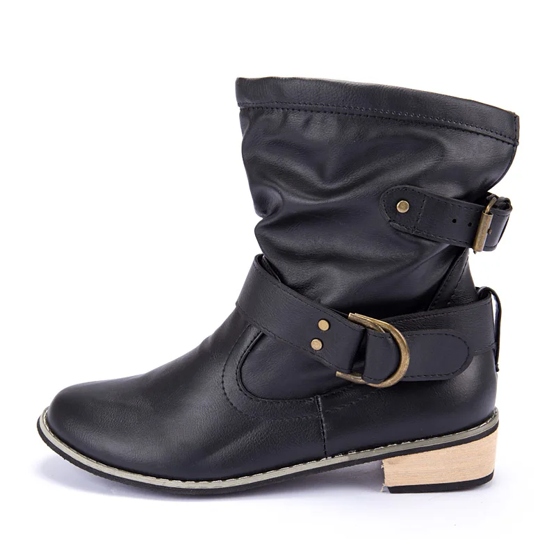 Special Offer 2019 Solid color comfortable motorcycle boots women boots buckle strap casual shoes woman zapatos de mujer Winter women boots Discount 50% Today!