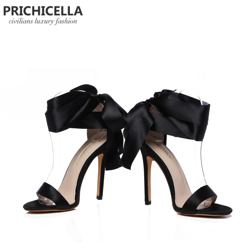 Special Offer PRICHICELLA Fashion black satin lace up ankle wrap high heel dress shoe genuine leather summer pumps Discount 0% Today!