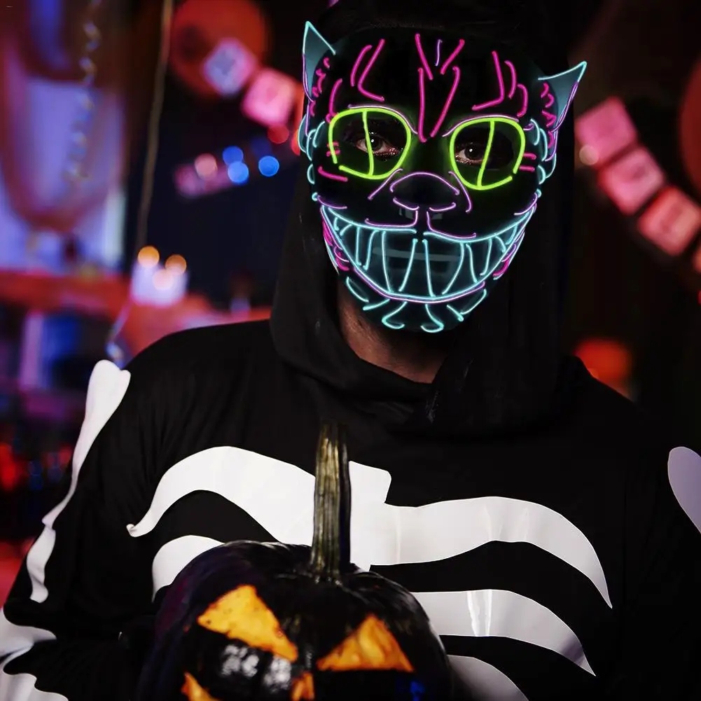 Special Offer EL wire Mask Flashing Cosplay LED Glowing Cat mask Costume Anonymous Mask for Glowing dance Masks Halloween decoration Discount 17% Today!