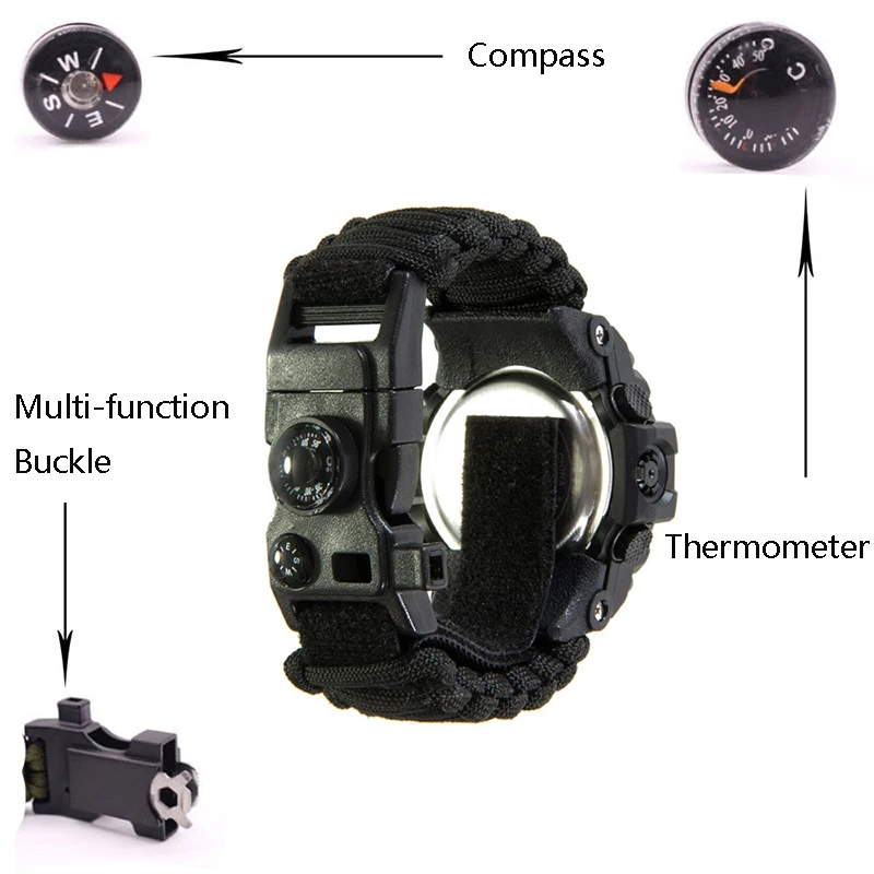 Best . (20% Off) Buy New Outdoor Survival Watch Bracelet Multi functional Waterproof 50M Watch For Men Women Camping Hiking Military Tactical Camping Cheap Online.