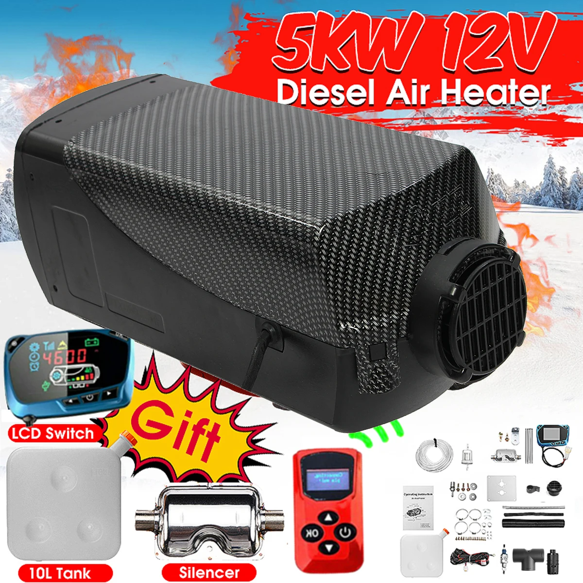 Special Offer 5000W Air diesels Heater 5KW 12V Singal Hole Car Heater For Trucks Motor Home Boats Bus +LCD key Switch +Silencer+Remote Control Discount 28% Today!
