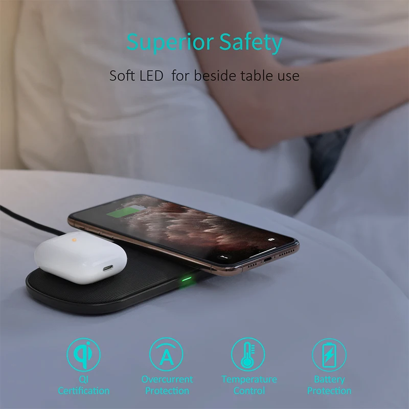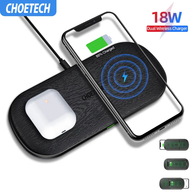 Special Offer CHOETECH 18W Qi Dual Wireless Charger 5 Coils for iPhone 11 X XS Max 8 XR Fast Charging Pad for Samsung S10 S8 S9 New AirPods 2 Discount 38% Today!