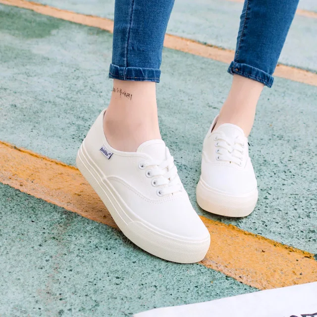 Best . (40% Off) Buy Canvas Shoes Casual Platform Vulcanized shoes Sneakers Flat Mouth Spring Autumn High Quality Fashion white black size 35 40 Price Online.