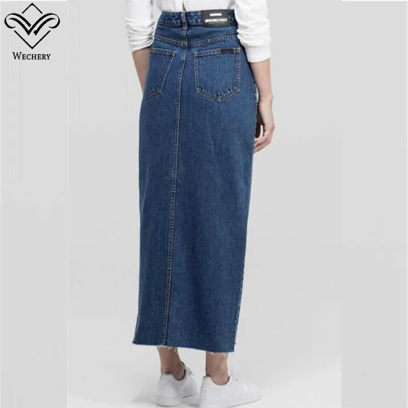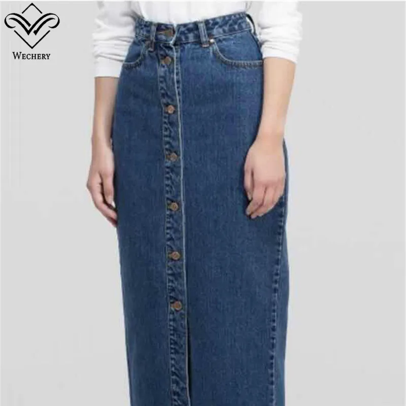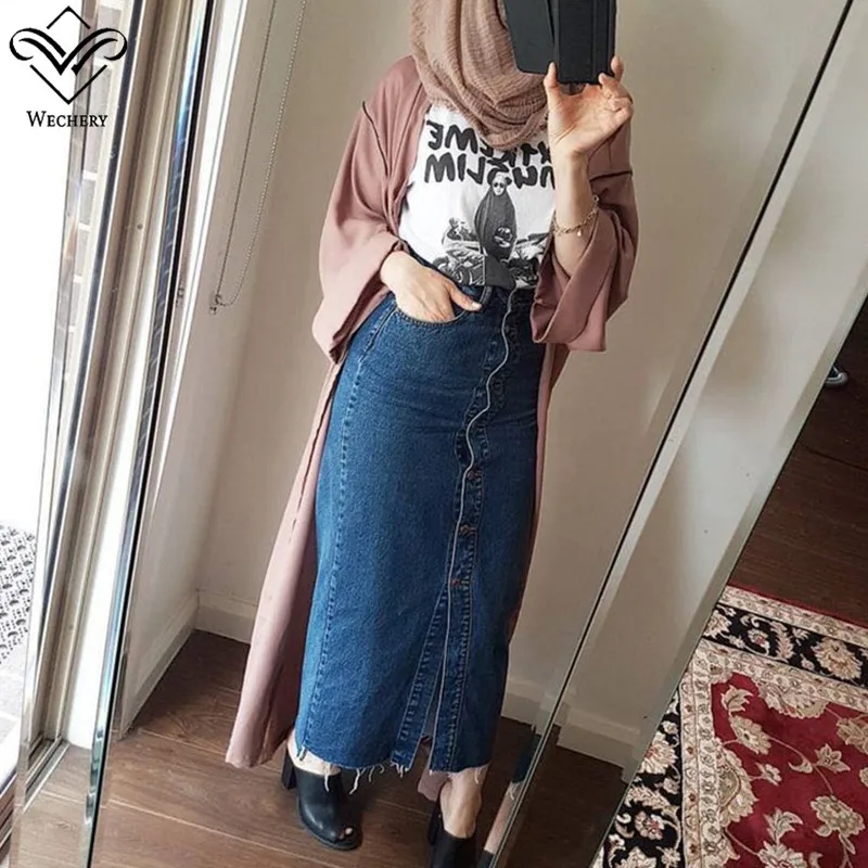 Special Offer Wechery 2018 Denim Skirt Muslim Women Jeans Skirts Blue Long Clothing Islamic Turkish Islamic Middle East Clothes Discount 40% Today!