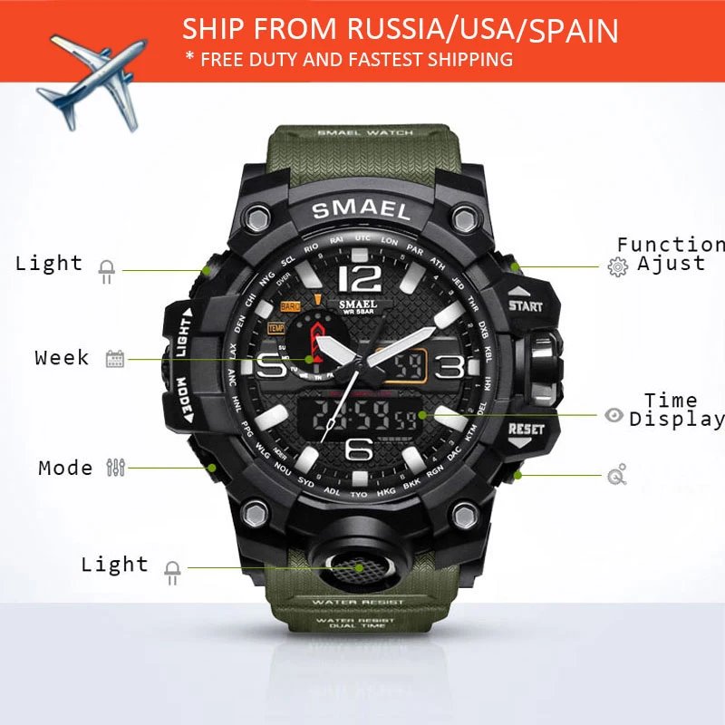 Special Offer Men Military Watch 50m Waterproof Wristwatch LED Quartz Clock Sport Watch Male relogios masculino 1545 Sport Watch Men S Shock Discount 45% Today!