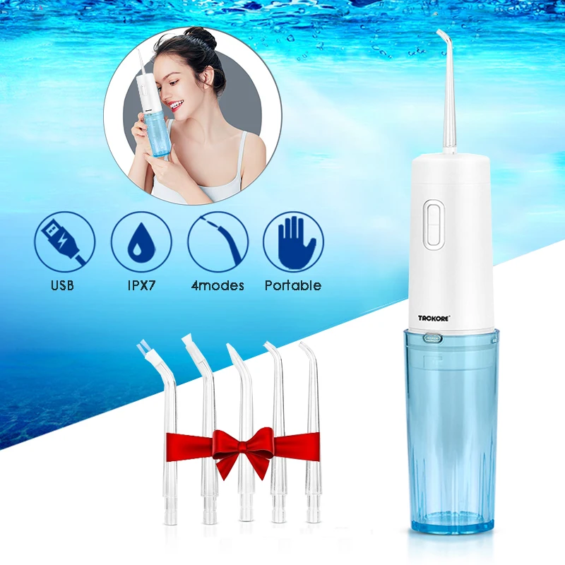 Special Offer Tackore Portable Folding Electric Oral Irrigator USB Charging Oral Irrigator Water Flosser Rechargeable 200ml + 5 Jet Tips Discount 45% Today!