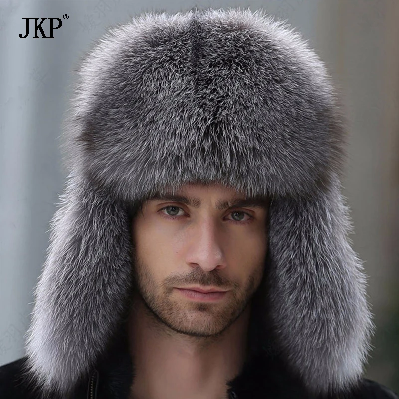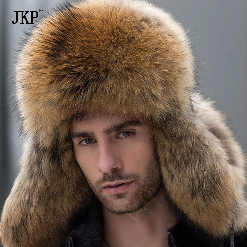 Best . (49% Off) Buy Russian leather bomber leather hat men winter hats with earmuffs trapper earflap cap man real raccoon fur black fox hatska Price Online.