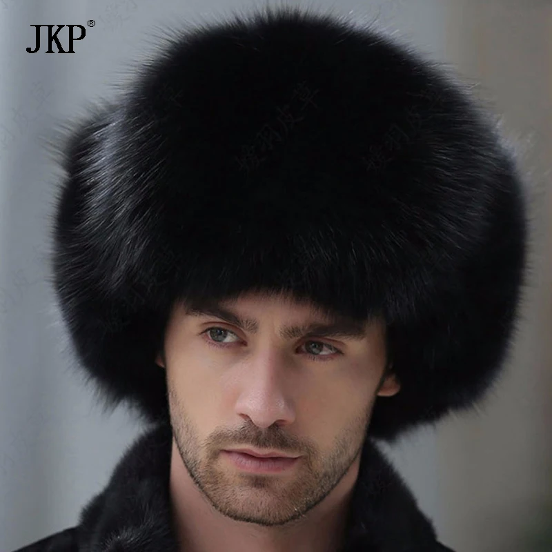 Special Offer Russian leather bomber leather hat men winter hats with earmuffs trapper earflap cap man real raccoon fur black fox hatska Discount 49% Today!