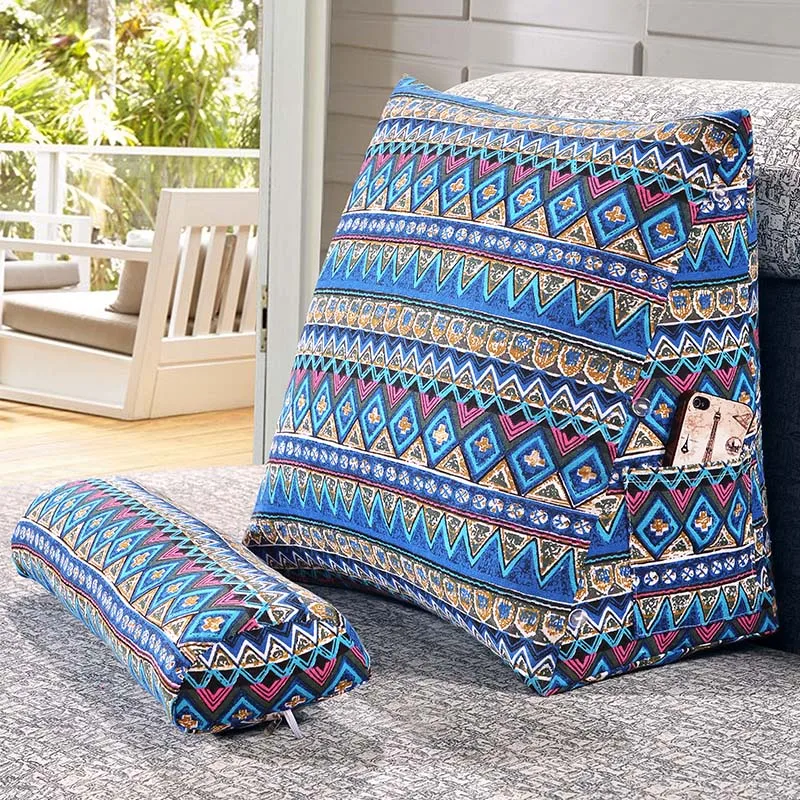Best . (5% Off) Buy SunnyRain Cotton Linen Triangular Backrest Cushion For Sofa Cushions For Bed Rest Pillow Back Support Large Size Cheap Online.