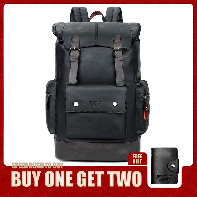 Best . (55% Off) Buy VICUNA POLO Simple Patchwork Large Capacity Mens Leather Backpack For Travel Casual mochila Men Daypacks Leather Travle Backpack Price Online.
