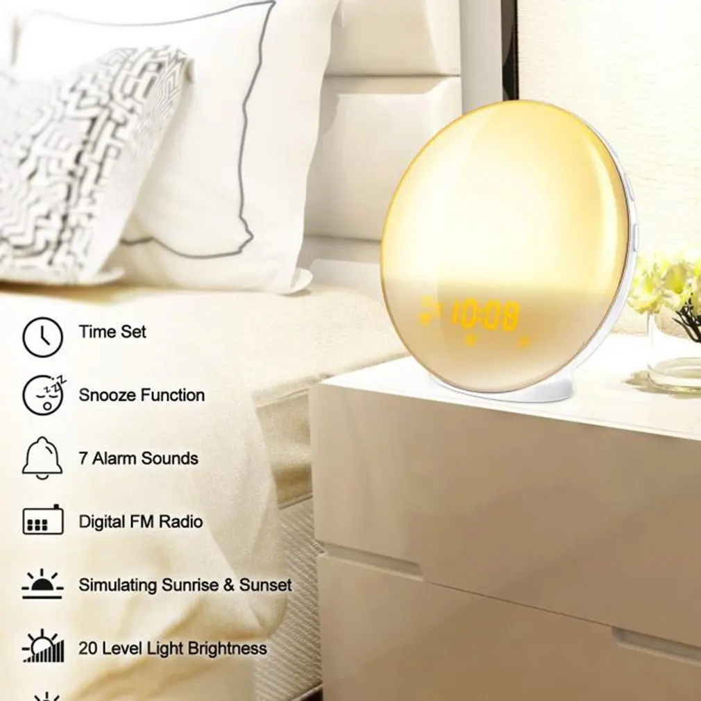 Special Offer Wake Up Light Digital Alarm Clock LED Electronic Alarm Clock Simulated Sunrise Sunset Nature Sleep Music Colorful Night Light Discount 22% Today!