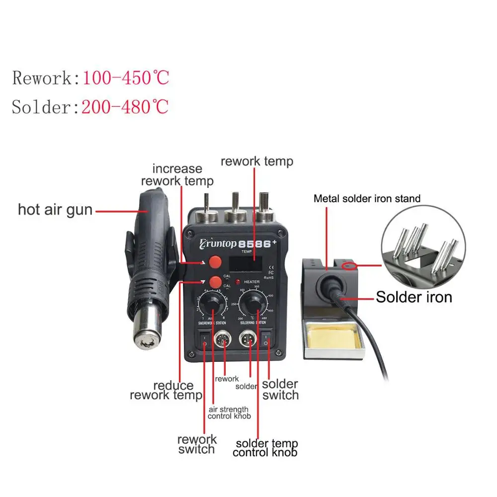 Special Offer Black Eruntop 8586+ Digital Display Electric Soldering Irons +Hot Air Gun Better SMD Rework Station Upgraded 8586 Discount 27% Today!
