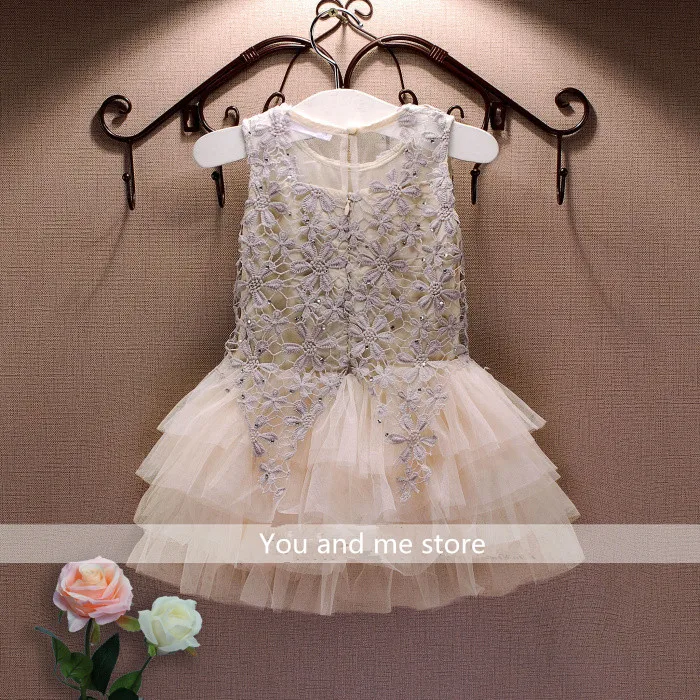 Special Offer 2019 Summer New Lace Vest Girl Dress Baby Girl Princess Dress 3 7 Age Children Clothes Kids Party Costume Ball Gown Beige Discount 37% Today!