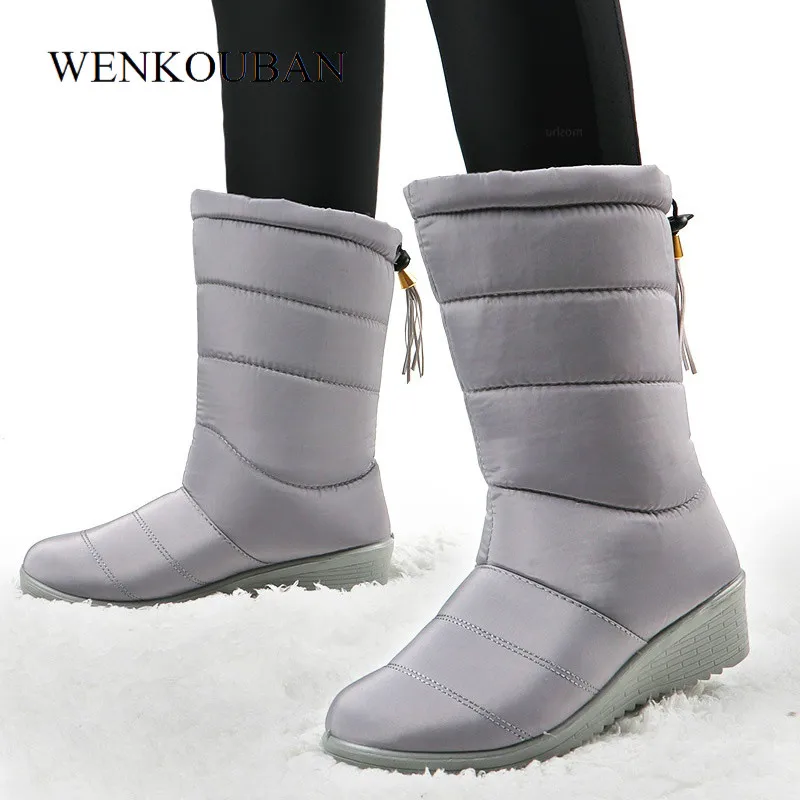 Special Offer Women Winter Boots Mid Calf Waterproof Snow Boots Fur Wedges Shoes Ladies Warm Down Boots Platform Botas Mujer Invierno 2019 Discount 64% Today!