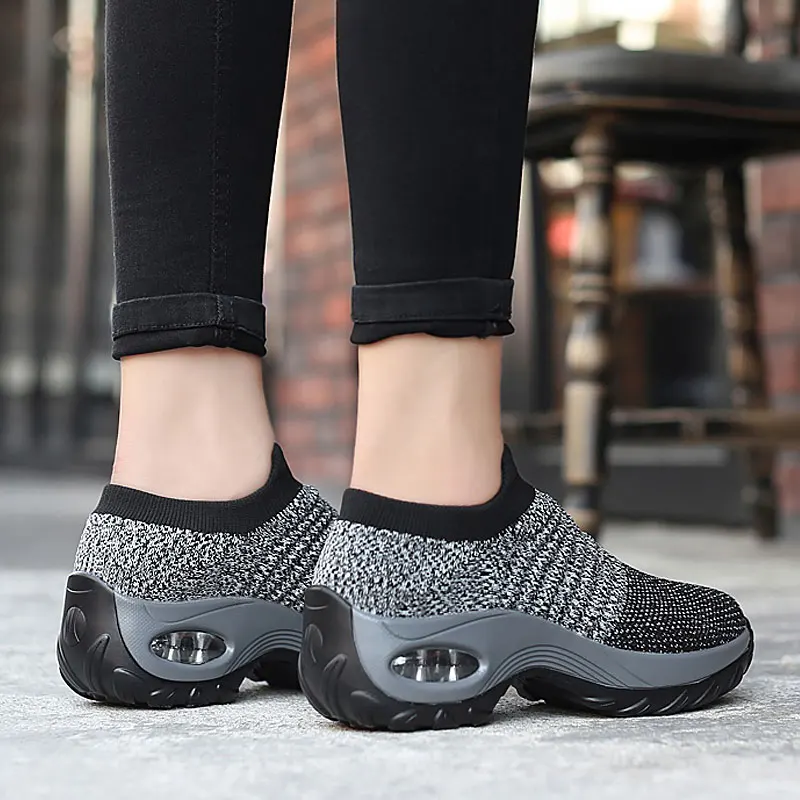 Special Offer Women shoes 2019 spring flat slip on platform sneakers women black breathable mesh air cushion ladies shoes woman tenis feminino Discount 65% Today!