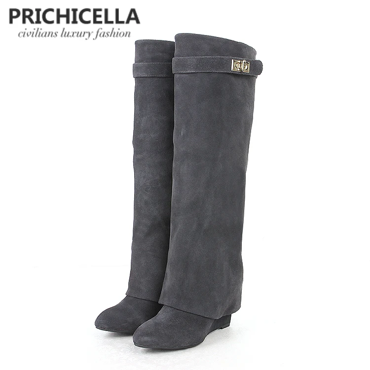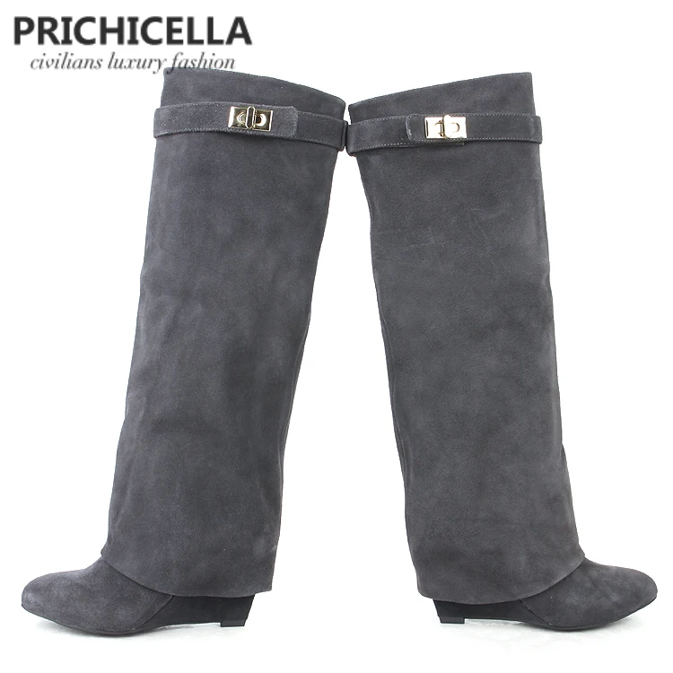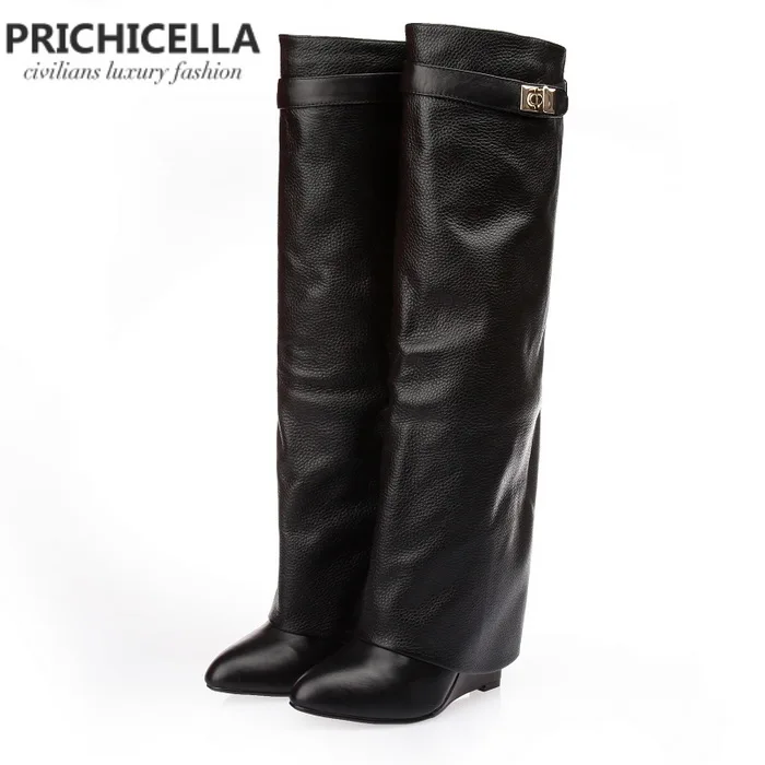 Special Offer PRICHICELLA genuine leather pointed toe buckle strap lock wedge gladiator knee high tall boots size34 42 Discount 0% Today!