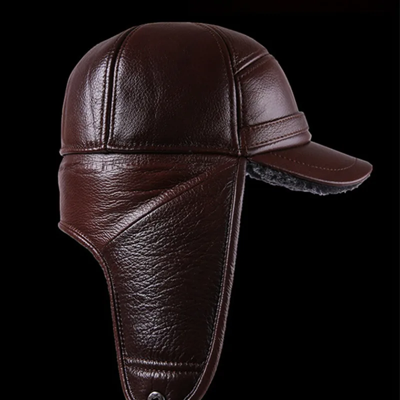 Special Offer SILOQIN Genuine Leather Hat Middle Old Aged Winter First Layer Cowhide Thicken Baseball Cap Keep Warm Earmuffs Male Bone Dad Hat Discount 21% Today!