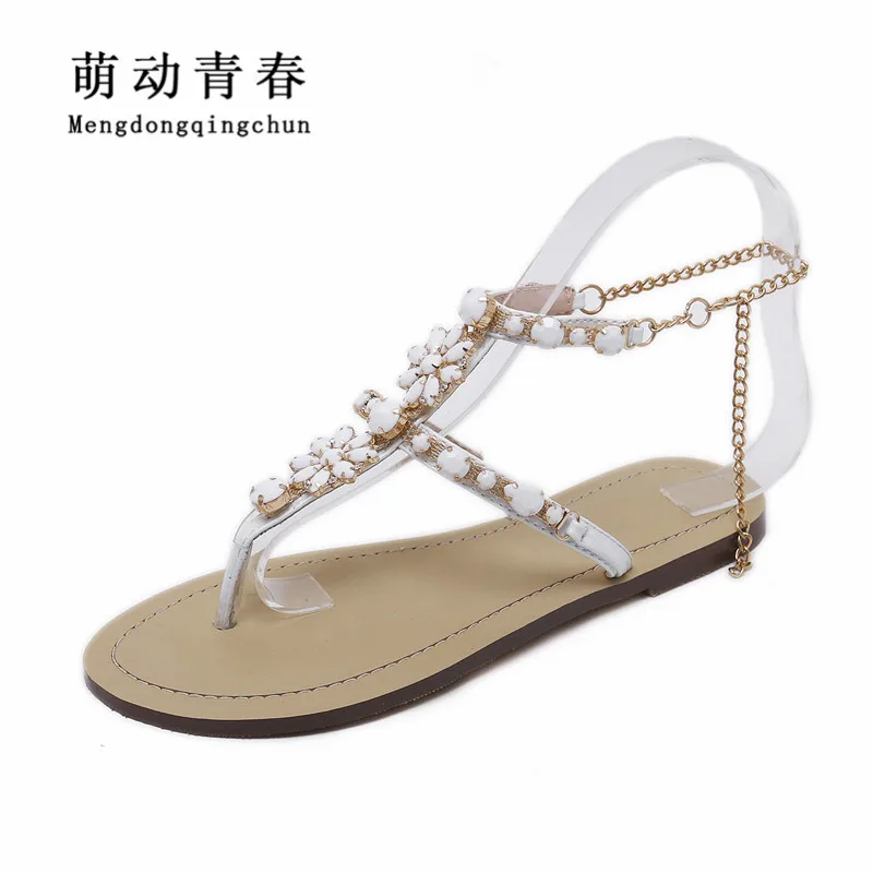 Special Offer 6 Color Woman Sandals Women Shoes Rhinestones Chains Thong Gladiator Flat Sandals Crystal Chaussure Plus Size 46 tenis feminino Discount 31% Today!
