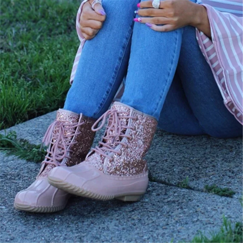 Special Offer STS Women Boots 2019 Women Sexy Fashion Ankle Snow Boots Bling Sequin Winter Rain Boots Waterproof Female Duck Boots Women Shoes Discount 39% Today!