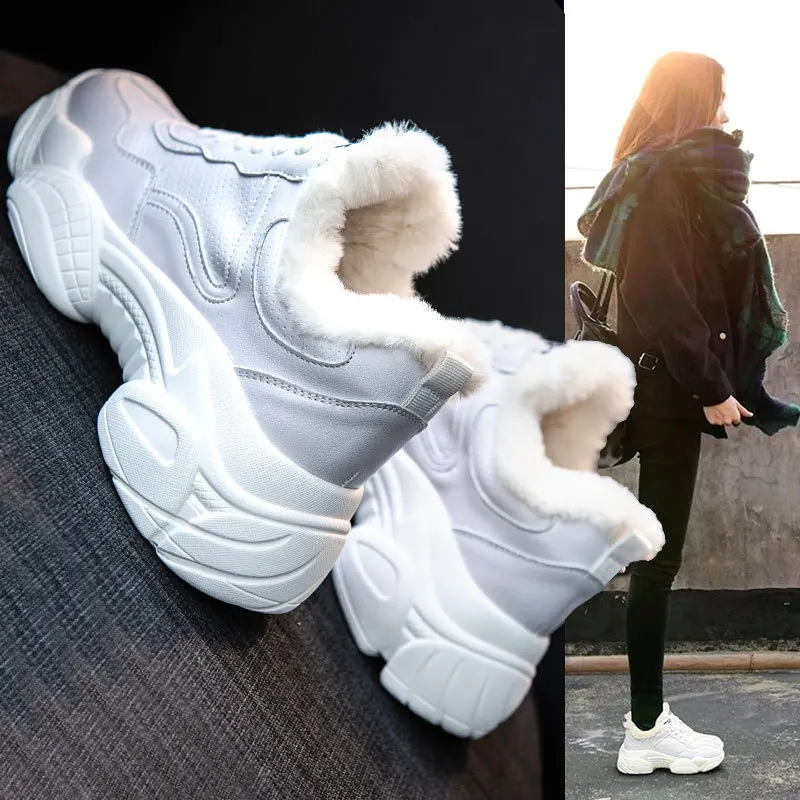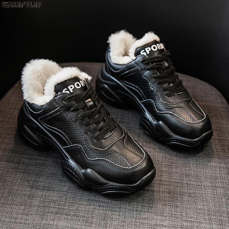 Special Offer SWYIVY Genuine Leather Chunky Sneakers Shoes Women White Casual Shoes Women Sneakers 2019 Winter Platform Snow Shoe Plush Fur Discount 43% Today!
