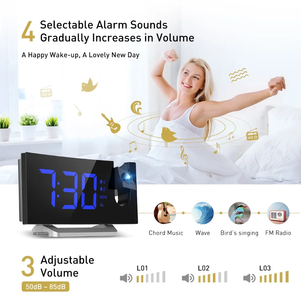 Best . (44% Off) Buy MPOW LED FM Projection Clock 2 Alarms Multifunctional Curved Screen 5 Levels Display Brightness 4 Adjustable Alarm Sounds Wekker Cheap Online.
