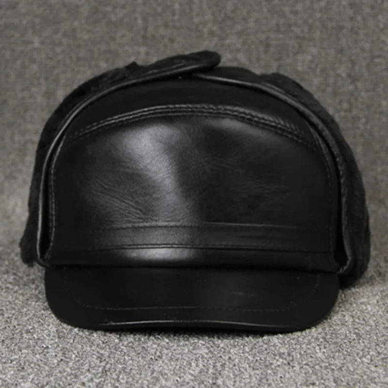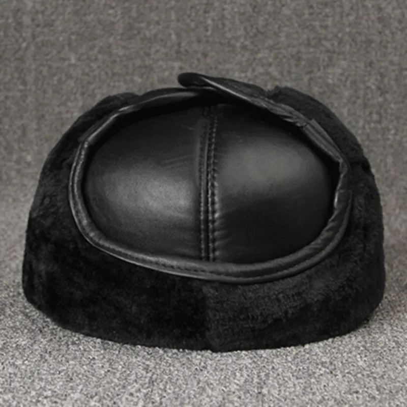 Special Offer SILOQIN Genuine Leather Hat High Quality Sheepskin Military Hats Male Bone Middle Old Aged Winter Earmuffs Keep Warm Flat Cap Discount 50% Today!