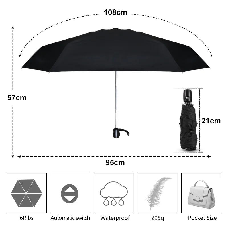 Special Offer Mini Pocket Automatic Umbrella Rain Women 5Folding Ultra Light Travel Men Umbrella Black Coating Portable Outdoor Gifts Umbrella Discount 43% Today!
